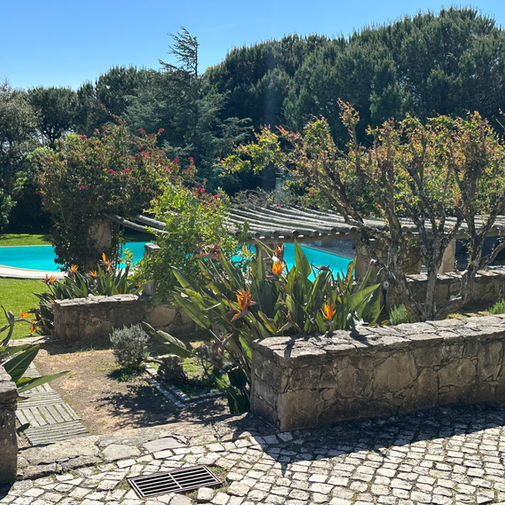 Set in the privileged environment of Malveira da Serra, just outside the hip town of Cascais, Villa Malveira is a modern Portuguese country house and private holiday estate, designed with flair to meet the highest standards in comfort. With the spectacular Atlantic Ocean close by, this beautiful holiday estate has featured in home decoration magazines, for the trendy country chic style of its interiors, relaxed atmosphere of understated luxury, and the original design of the pool and the gardens.