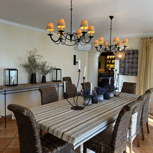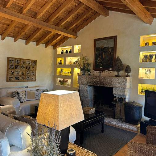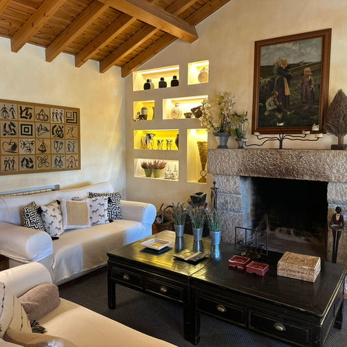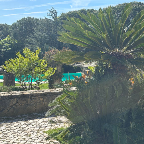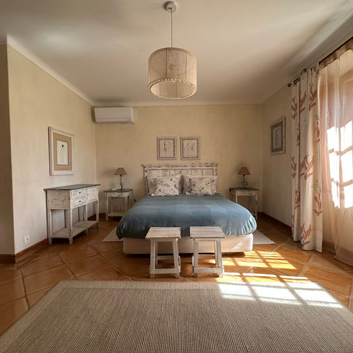 Outside, the vast lush gardens flourish in sloped terraces, facing the afternoon sunshine and the Atlantic Ocean. Walls and a pine forest secure the estate and ensure privacy to its guests. The pine forest area of the garden has a lovely children pay area. The centrefold is the large private swimming pool, which has the shape of an exotic lagoon, and an infinity edge. The swimming pool is next to a lounging area, the perfect sun trap.